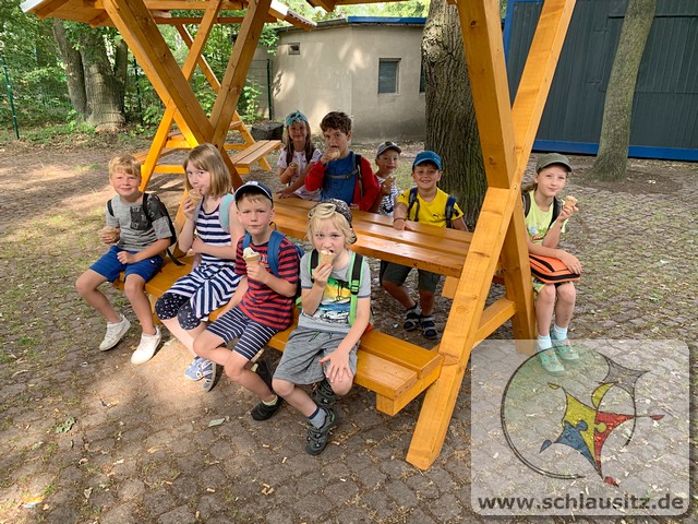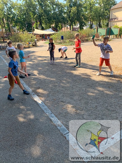 Unsere 5. Ferienwoche begannen wir mit ein paar Zirkusübungen. Ob jonglieren, Hula Hopp oder Seilspringen. Jeder konnte einmal üben und völlig neue Talente an sich entdecken. Am Dienstag nutzten wir den heißen Sommertag und liefen zum Strand. Dort gab es so einiges zu entdecken. Sogar einen Flusskrebs haben die Kinder gefunden. Am Mittwoch gab es zum Kinofilm „Drachenzähmen leicht gemacht“ lecker Popcorn und Eistee. Donnerstag haben die Kinder einen Obstsalat hergestellt. Einen Dank noch einmal an die vielen mitgebrachten Früchte. Wir haben es uns schmecken lassen. Zum Abschluss der Woche konnte jeder sein Talent vorführen. Wir haben gestaunt, was ein jeder so kann!