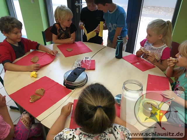 Die letzte Ferienwoche starteten wir mit einer Schnippseljagt quer durch Brieske. Trotz Regen sind wir durch die Straßen gezogen um die vielen Punkte zu suchen. Den Schatz haben wir letztendlich gefunden, versteckt im Kindergarten. Am Dienstag gab es Waffeln mit selbstgemachtem Apfelmus. Selbst hergestellt schmeckt doch gleich viel besser. Mittwoch erhielten wir eine Führung durch den Tierpark Senftenberg. Wir haben wirklich viel gelernt über Affen, Erdmännchen und Co. Die letzten zwei Tage haben wir gemütlich ausklingen lassen beim freien Spiel und toben.