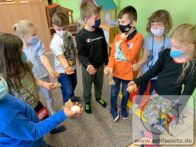 Dienstag liefen wir in den Niemtscher Park für ein Frühlingsbingo. Jedes Kind bekam einen Eierkarton und eine Liste von verschiedenen Dingen aus dem Wald. Die Suche ging quer durch den Wald. Letztendlich bekam jeder seinen Karton voll. Wir hatten sogar noch Zeit, um eine Runde auf den Spielplatz in Brieske zu gehen.