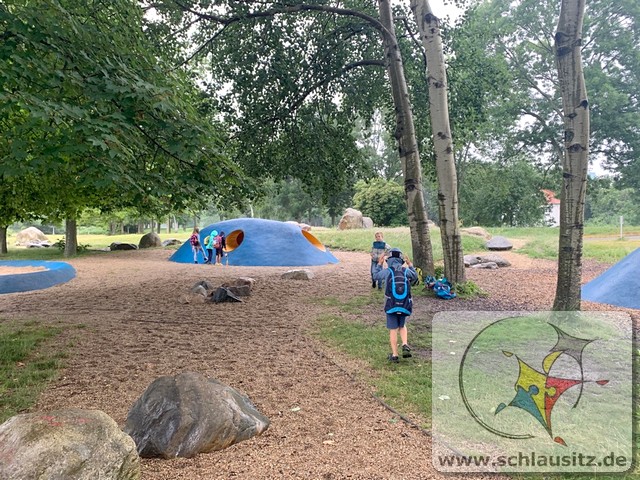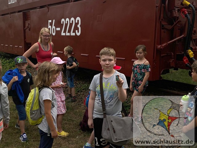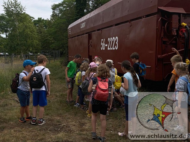 Am Montag erkundeten wir mit der Seeschlange das Lausitzer Seenland. Die kleine Bahn startete am Familienpark und fuhr bis zum rostigen Nagel, wo wir unser Mittagessen einnahmen. Anschließend waren wir noch auf dem Spielplatz in Großkoschen.