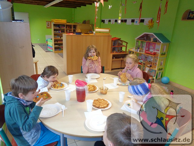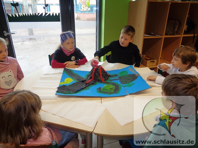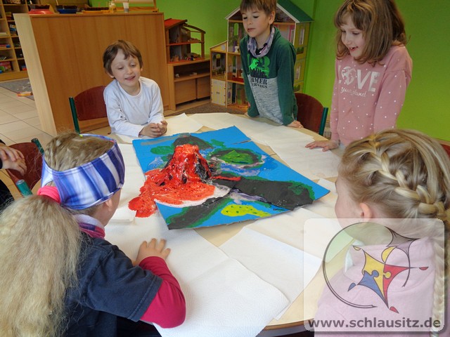 Am Donnerstag standen Experimente im Vordergrund. Wir haben versucht Blumen zu färben, ein Experiment mit einem Ei durchgeführt und einen Vulkan ausbrechen lassen. Zu diesem Vulkan haben wir vorher eine kleine Vulkaninsel dekoriert. Zum Abschluss des Tages haben wir uns mit frischen, selbstgebackenen Waffeln gestärkt.