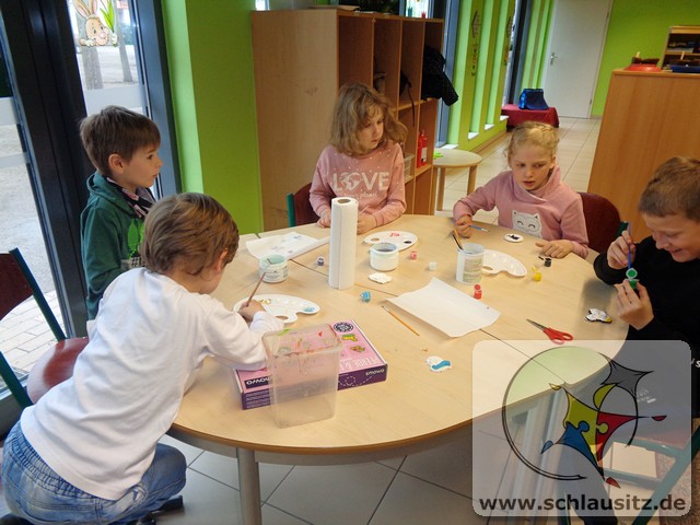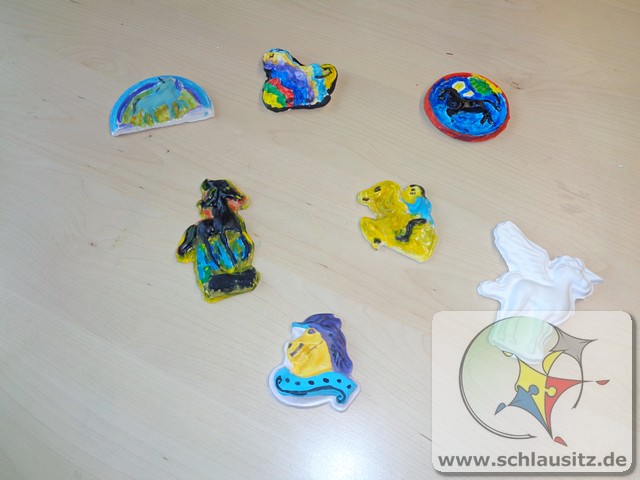 Zum Abschluss der 2. Ferienwoche haben wir unsere gegossenen Gipsfiguren bemalt und danach mit einer Disco die Ferienwoche ausklingen lassen.