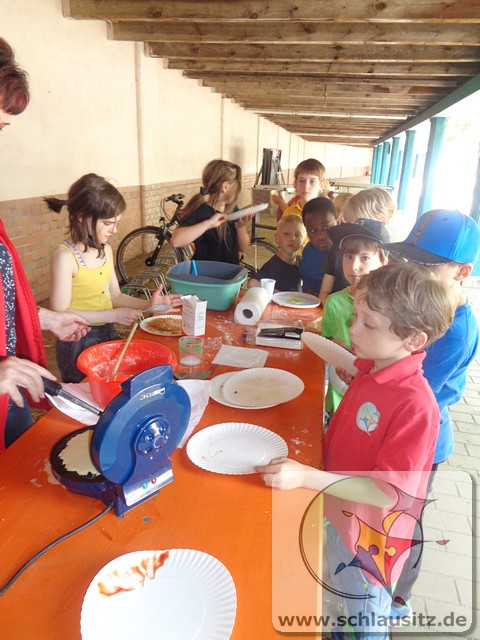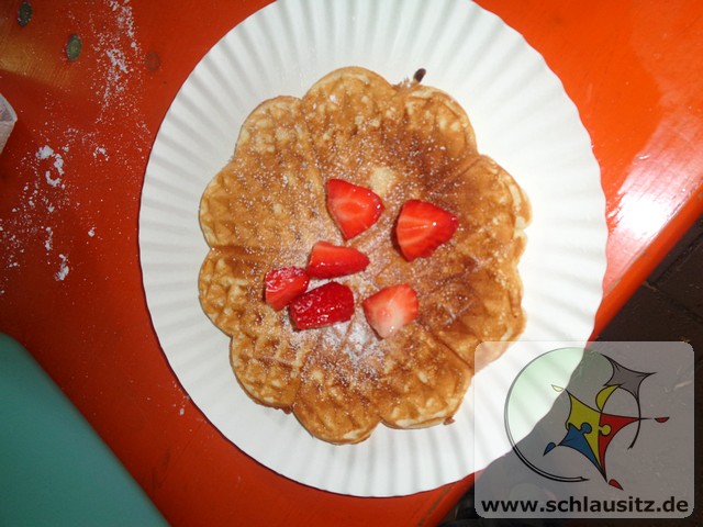 Am Kindertag überraschten wir die Schülerinnen und Schüler des Hortes mit einer kleinen Kindertagfeier und Tanzparty. Traditionell zum Kindertag backten wir Waffeln, dazu gab es leckere Erdbeeren und im Anschluss gab es für jedes Kind ein Hotdog.