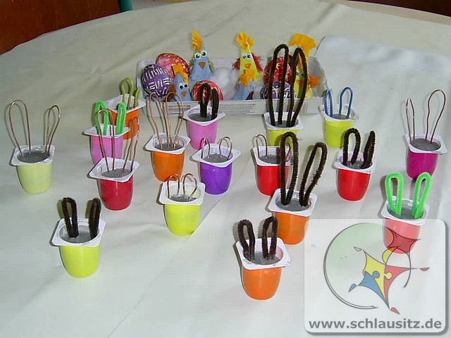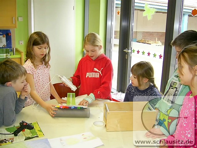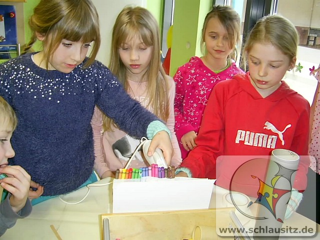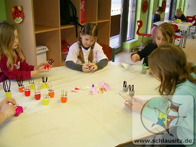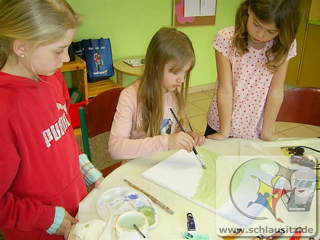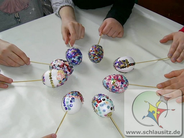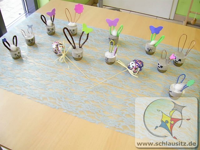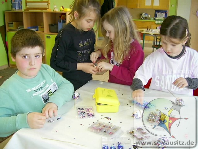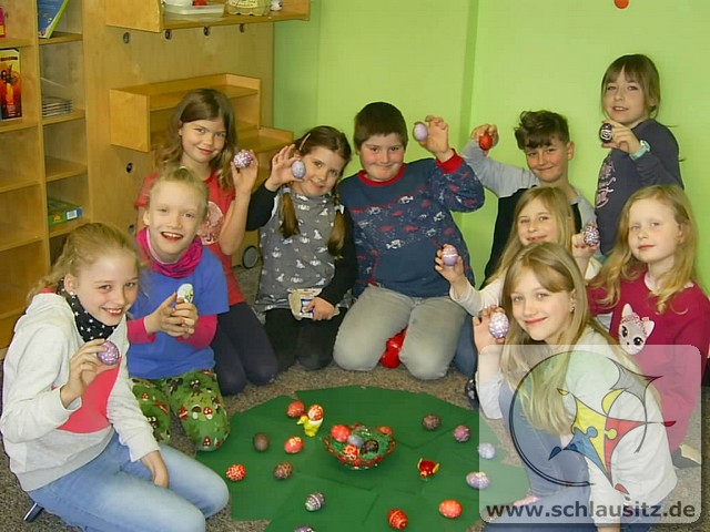 In den Osterferien erlebten die Hortkinder viele kreative Tage rund um das Osterfest. Sehr kreativ wurden Ostereier - sorbisch und bunt - dekoriert und gefärbt. Aus Bastelbeton stellten die Kinder kleine Osterhasen her und dekorierten bunte Pailletteneier.