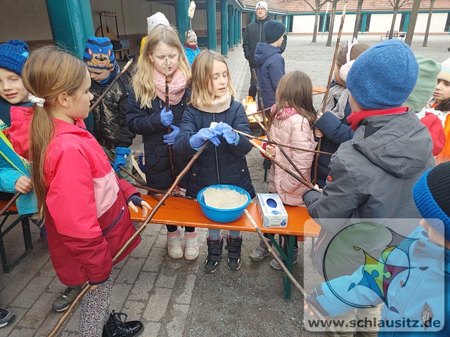 Mit weihnachtlicher Musik im Hintergrund versüßten wir uns das Warten auf den Weihnachtsmann. Mit selbst zubereitetem Kinderpunsch, Weihnachtsgebäck und Stockbrot am Lagerfeuer wärmten wir uns auf. Nebenbei erzählten uns die Kinder von ihren Wünschen an den Weihnachtsmann.