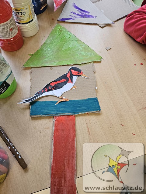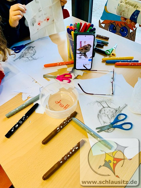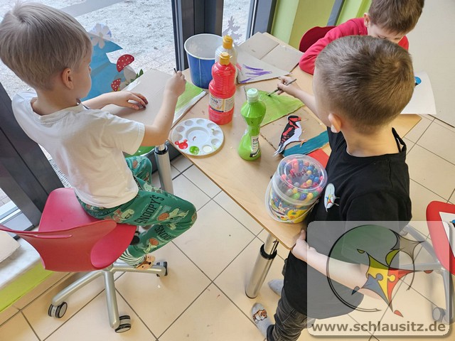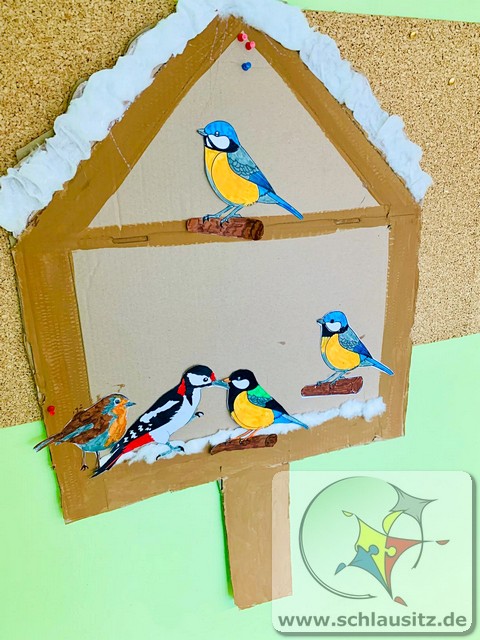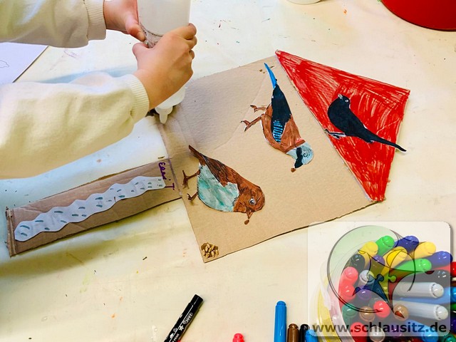 Lange Frostperioden, dicke Schneeschichten - im Winter herrschen keine rosigen Zeiten für Vögel. Nur schwer kommen sie an natürliche Nahrung. Amseln, Drosseln, Meisen, Finken und Spechte sind hart im Nehmen - sie gehören zu den sogenannten „Standvögeln“ und ziehen nicht in wärmere Gebiete, sondern trotzen der Kälte. Gerade im Winter freuen sich unsere heimischen Vögel über etwas Zusatzfutter auf Balkons und in Gärten. Gemeinsam mit den Hortkindern besprachen wir diese Thematik und überlegten, wie wir den Vögeln helfen können. Dabei lernten wir noch einmal die Vogelarten kennen und bastelten verschiedene Futterhäuser.Image00003