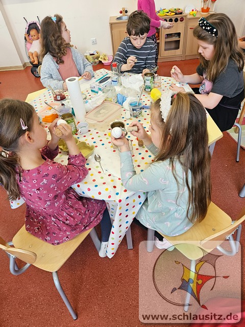 Zum Einstieg unserer Osterferien gestalteten wir unsere Ostereier mit sorbischer Wachstechnik. Wir waren sehr erstaunt, wie viele Arbeitsschritte dafür erforderlich sind. Der Dienstag stand ganz im Zeichen von sportlicher Aktivität. Beim Eierlauf, Sackhüpfen und weiteren Wettkämpfen stellten die Kinder ihre Ausdauer und Geschicklichkeit unter Beweis. Unser erster Ausflug ging zum Bowlen ins „STRIKE“ nach Senftenberg. Danach stärkten wir uns mit einem „Happy Meal“ bei McDonalds. Bei bestem Wetter suchten wir, pünktlich zu Ostern, kleine Überraschungen auf dem Kitagelände und machten uns danach auf den Weg zum wunderschönen Senftenberger See.