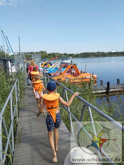 In der 4. Ferienwoche haben die Kinder wieder sehr spannende und abwechslungsreiche Aktivitäten erlebt. Am Montag waren wir auf Entdeckertour mit der Seeschlange. Hierbei haben die Kinder viel Neues entdeckt und auch viel über ihre Umgebung gelernt. Die Abenteuerreise sorgte bei allen für Begeisterung und regte die Fantasie an. Am Dienstag haben wir leckere Waffeln gebacken. Die Kinder durften beim Rühren, Portionieren und Verzieren mithelfen. Der süße Duft verbreitete sich im ganzen Haus und am Ende konnten alle die warmen Waffeln genießen. Zur Wochenmitte stand das Tretbootfahren auf dem Tagesplan. In kleinen Gruppen erkundeten wir den See und hatten viel Freude beim gemeinsamen Strampeln und Rutschen. Bei herrlichem Sonnenschein verbrachten wir den Donnerstag am See und bauten Burgen, sammelten Steine und Muscheln und tobten uns beim Volleyballspielen so richtig aus. Zum Abschluss der Woche wurden Boote gebastelt. Mit viel Kreativität und Geschick entstanden tolle kleine und große Kunstwerke, die die Kinder anschließend mit nach Hause nehmen durften.