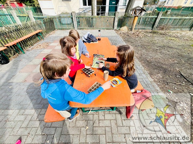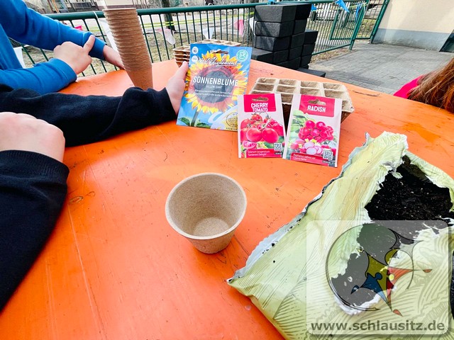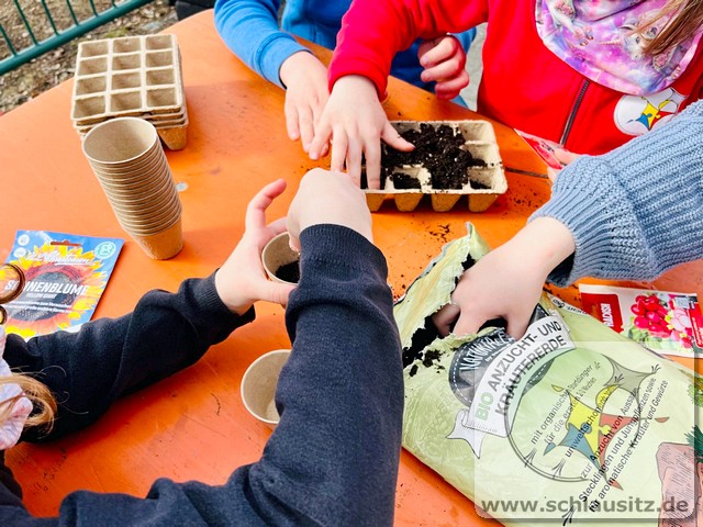 Anschließend haben wir mit dem Vorziehen erster Pflanzen begonnen. Mit viel Neugier und Begeisterung wurden Samen in kleine Töpfe gesät und regelmäßig gegossen. Die Kinder beobachteten nun gespannt das Wachstum und lernen dabei, Verantwortung für die Pflege der Pflanzen zu übernehmen.