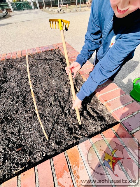 Im März haben wir gemeinsam mit den Kindern die Beete für die kommende Gartensaison vorbereitet. Zunächst wurden die Flächen von alten Pflanzenresten befreit, aufgelockert und für die Aussaat vorbereitet. Die Kinder konnten dabei aktiv mithelfen und Erfahrungen im Umgang mit Gartenwerkzeugen sammeln.