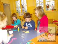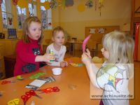 Jetzt konnten wir sie ganz individuell gestalten. Dazu nahmen wir viele Glitzersteine, Sterne, Blumenmotive und Federn und Kleber.