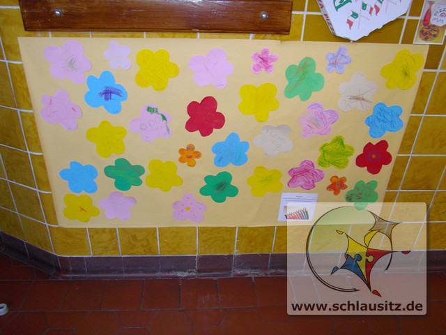 Mit viel Spaß, guter Laune und Kreativität entstanden viele bunte Blumen, die zu einem Wandbild gestaltet wurden.
