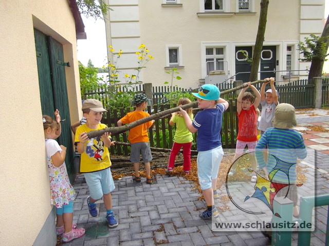 Die dazu benötigten langen Holzstangen hat uns extra Herr Marwan in den Kindergarten gebracht. Dafür sagen wir ein dickes Dankeschön!