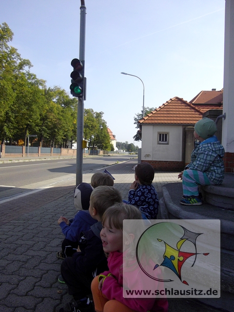Verkehrserziehung ist sehr wichtig, denn unsere Kinder nehmen täglich am Verkehrsgeschehen teil. Wie eine Ampel funktioniert, das schauten sich alle Kinder aus der Grashüpfergruppe bei einem Spaziergang an. Viele Autos und LKW's, aber auch Radfahrer, waren zu hören und zu sehen.