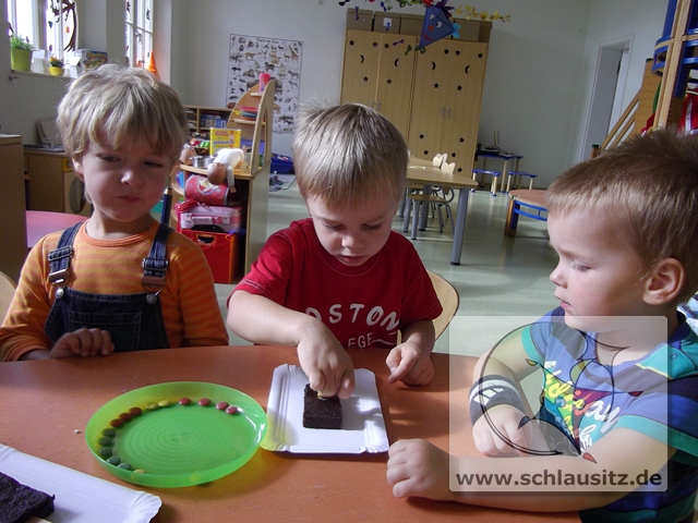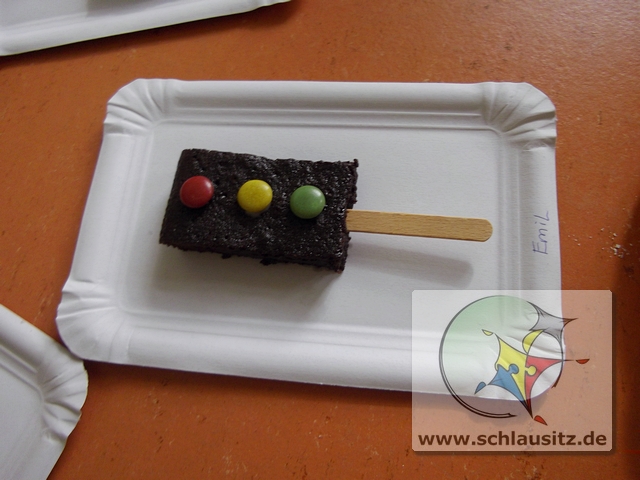 Gleichzeitig wurden wichtigste Verhaltensweisen an der Straße besprochen. Einige Tage später konnten sich alle Kinder eine eigene Fußgängerampel basteln. Viel Spaß machte es auch, eine Ampel zu backen und mit Smarties zu verzieren.
