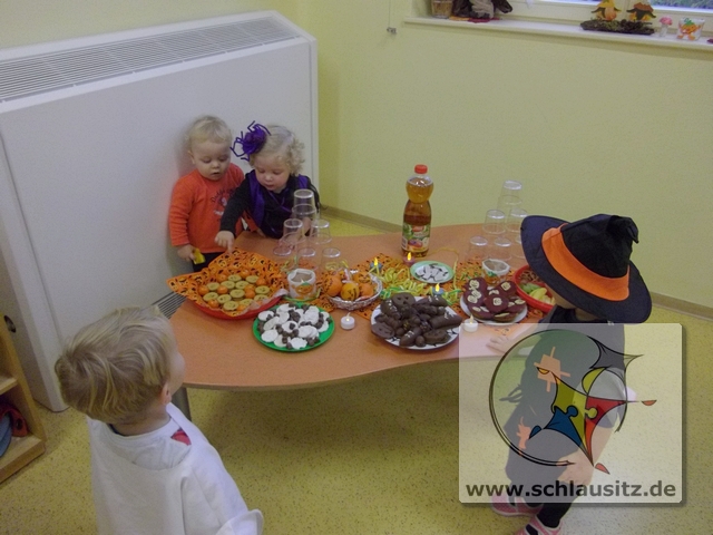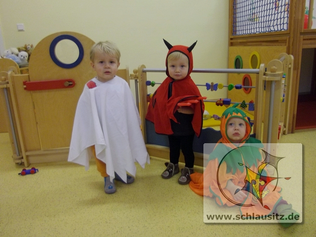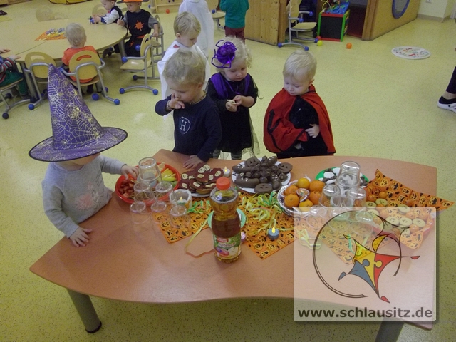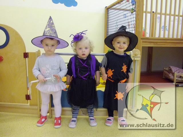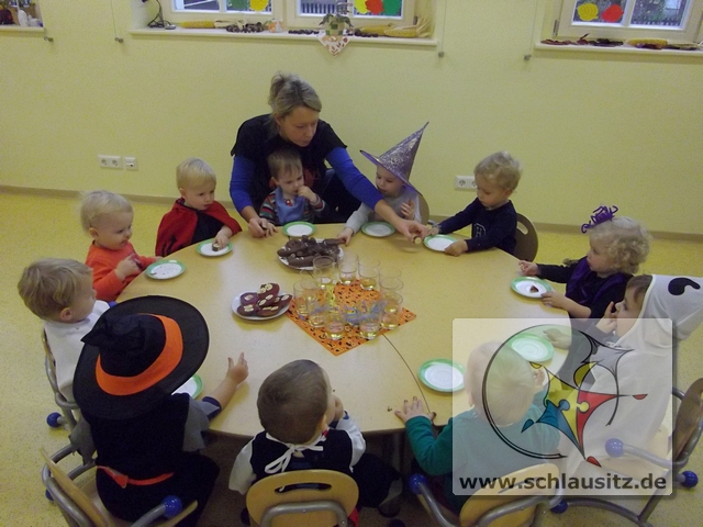 Da war die Freude groß. Johanna verabschiedete sich mit dem Spruch „morgen Party!" und auch wir anderen Glühwürmchen freuten uns schon darauf. Viele Glühwürmchen hatten sich verkleidet. Wir hatten Hexen, Kürbisse, Gespenster und Teufelchen bei uns zu Gast.