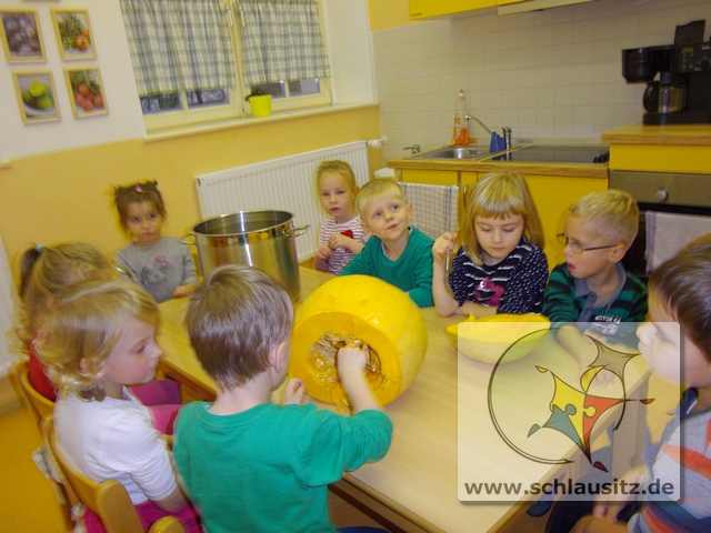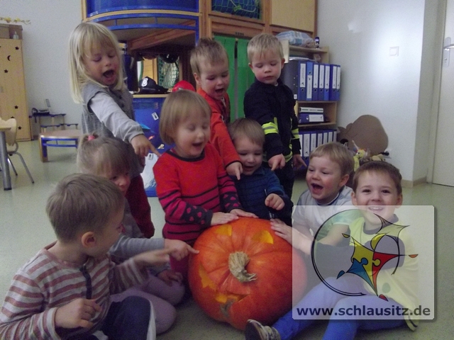 Alle Kinder waren mit vollem Eifer dabei das bevorstehende Gespensterfest vorzubereiten. Kürbisse wurden ausgehöhlt, Spinnen gebastelt und Fledermäuse aufgehängt.