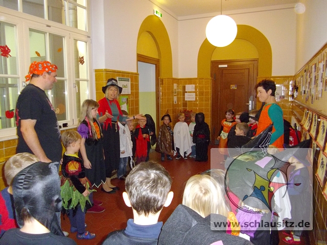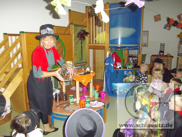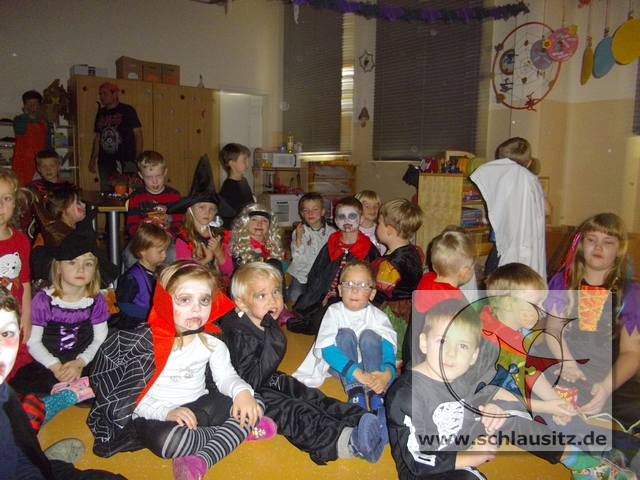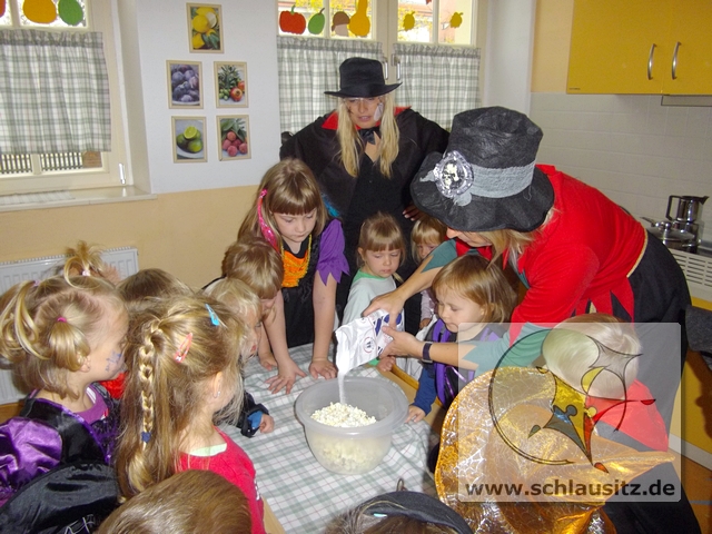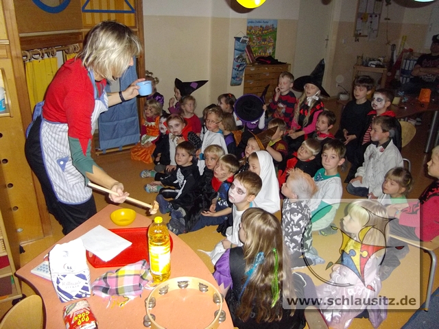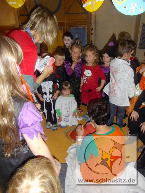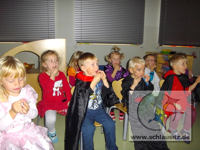 Zum Gespensterfest kamen dann alle Kinder gruslig verkleidet in den Kindergarten. Zur Begrüßung gab es Krötenschleim und jeder konnte beim Gespenstertango sein Tanzbein schwingen.