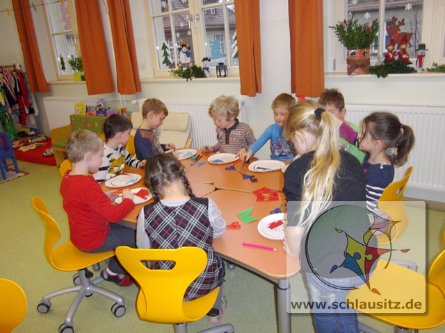 Nun schmücken die lustigen weißen Männer unseren Kindergarten.