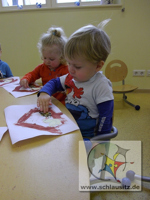 Die kleinen Körnchen haben wir vorsichtig aufgenommen und ins Häuschen gelegt. Das war gar nicht so einfach, wir haben gemerkt dass es ohne Handschuhe leichter geht.