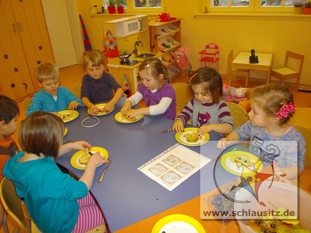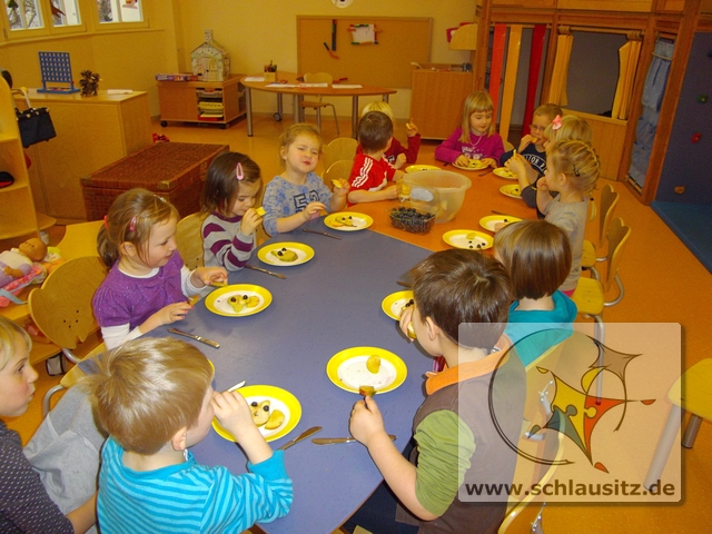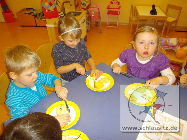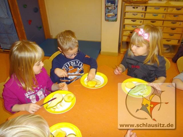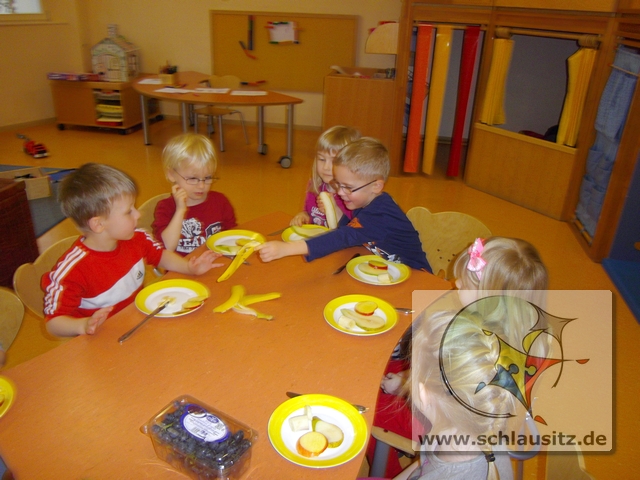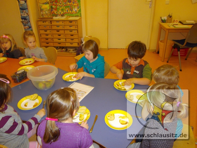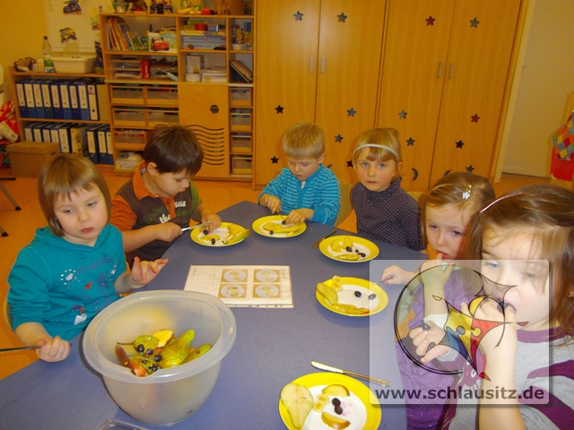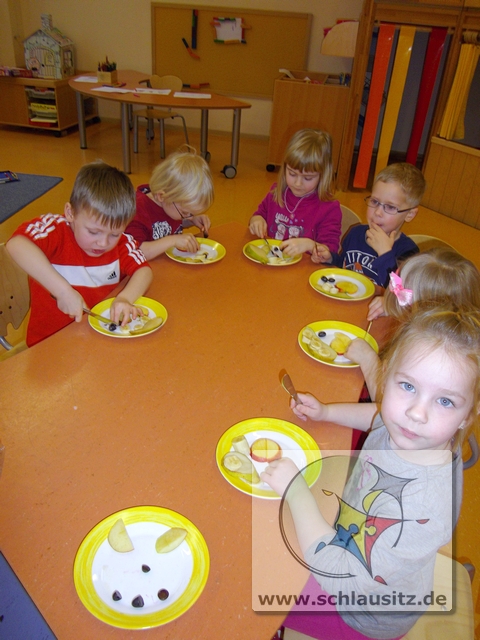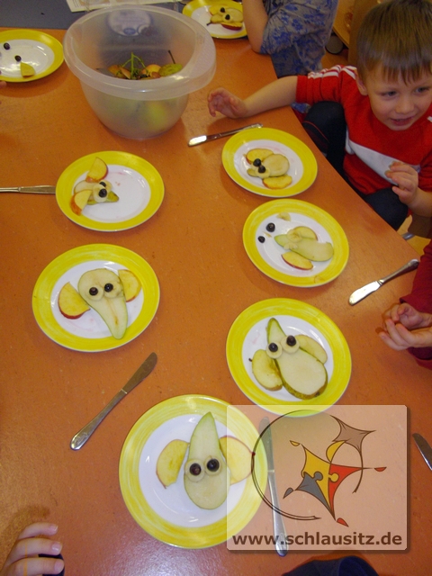 Heute haben wir Schlaumäuse aus verschiedenen Obstsorten einen Uhu gelegt.