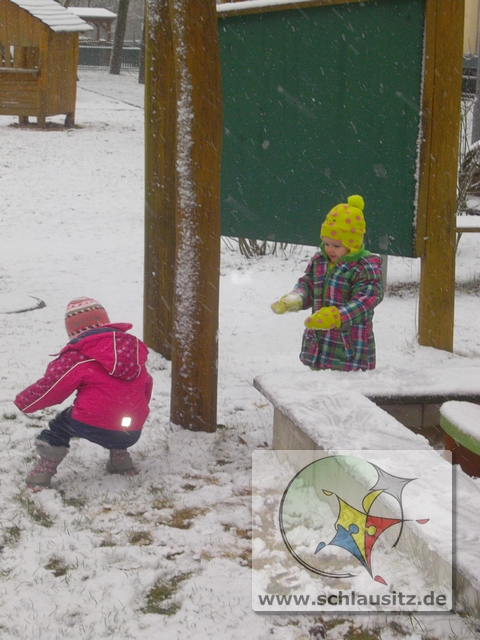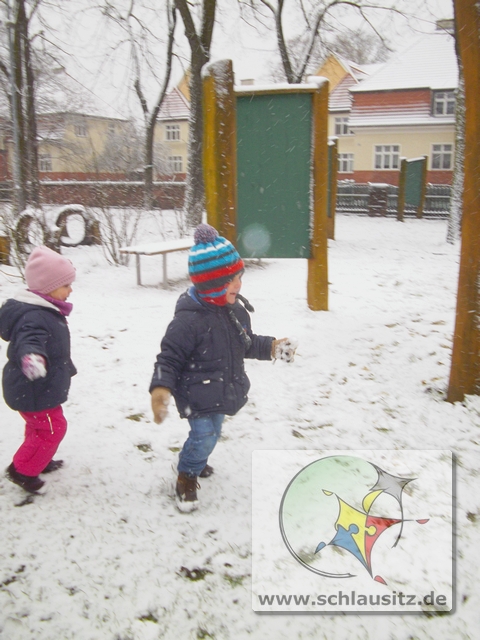 Doch endlich, so kurz vor dem Wochenende schüttelte Frau Holle noch einmal ihre Betten aus und wir gingen natürlich nach draußen um Schneebälle zu formen und sie zu werfen.