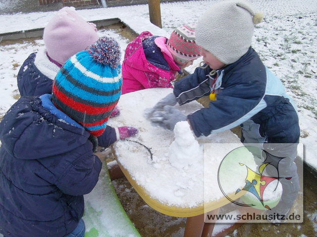 Kita Kinder bauen SchneemannSchnee, Schnee, Schnee, ich freue mich, juchhe!