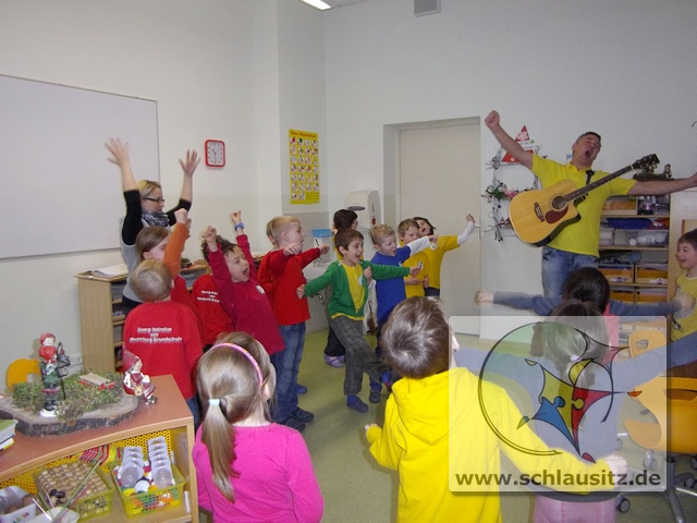 Außerdem hatten wir in dieser Woche auch noch ein anderes tolles Erlebnis. Der Musiklehrer, Herr Apelt, hat uns Entdeckerzwerge mit den Erst- und Zweitklässlern besucht und gezeigt, was die Schüler für tolle Lieder lernen. Da hat es uns auch gar nicht mehr auf den Stühlen gehalten.