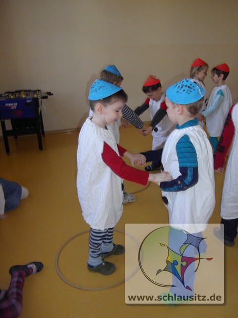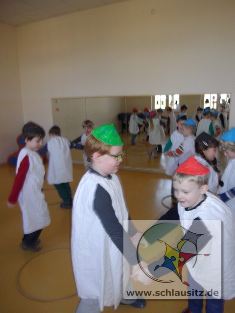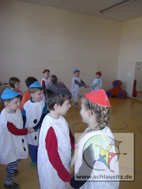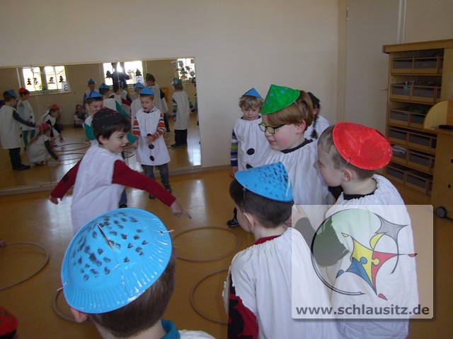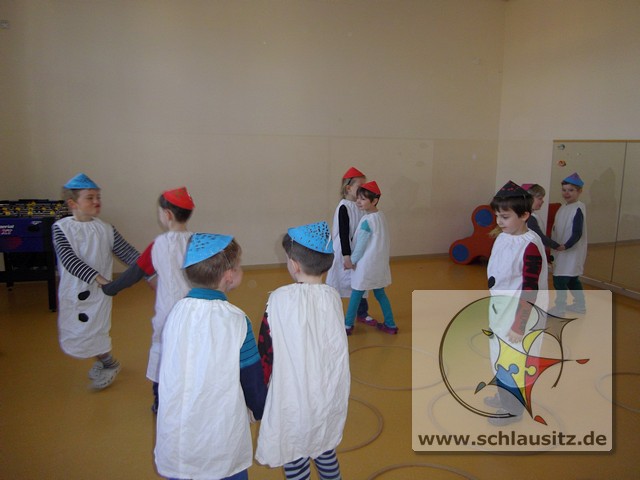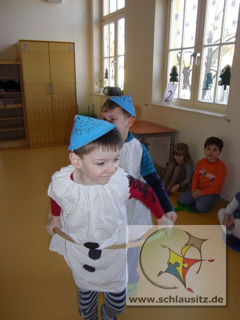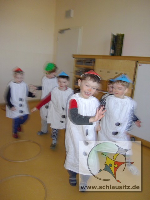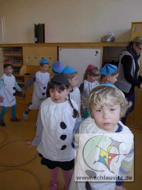 Deshalb haben wir Entdeckerzwerge vor einiger Zeit einen lustigen Schneemanntanz einstudiert. Natürlich entstanden auch richtige Schneemannkostüme dazu. Da nun aber langsam der Frühling an die Tür klopft und von richtigem Winter auch nicht mehr die Rede sein kann, haben wir heute unseren Schneemanntanz noch ein letztes Mal getanzt. Wir hatten sogar ein paar Zuschauer dabei, denn uns haben fünf Schlaumäuse besucht.