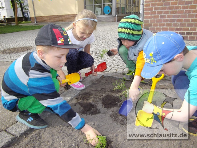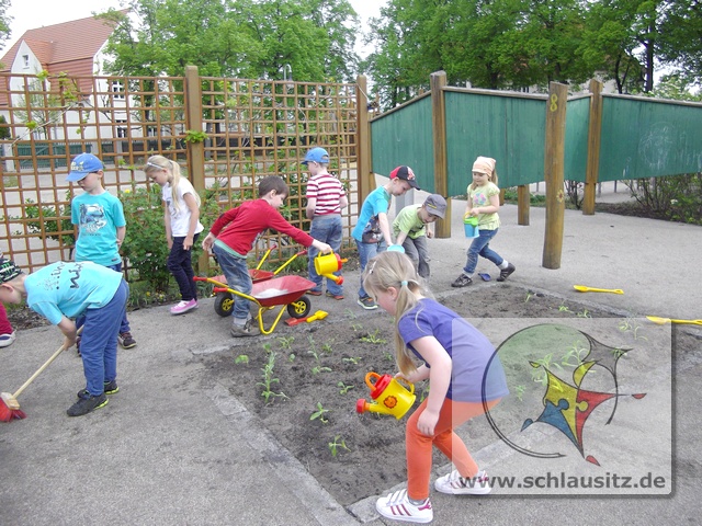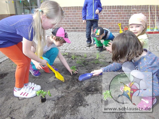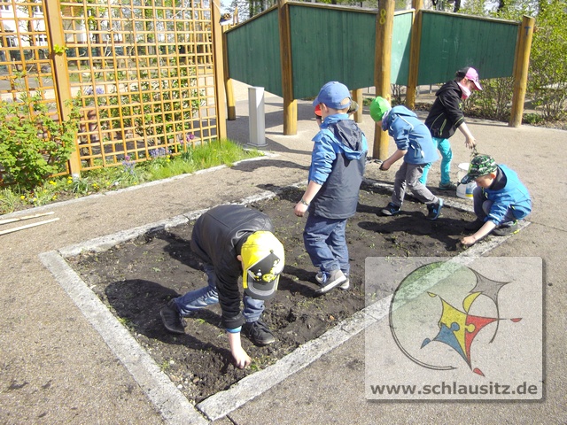 Im Frühling beginnt die Zeit, in der alles wächst und gedeiht. Wir Entdeckerzwerge sind in diesem Jahr für unsere Kindergartenbeete verantwortlich, denn Pflanzen auszusähen und kleine Sprösslinge zu hegen und pflegen erfordert von uns Kindern viel Geduld und auch Disziplin. So haben wir in der vorigen Woche die Beete zum Pflanzen vorbereitet, also vom Unkraut befreit. Herr Glaser hat uns auch geholfen und dann noch etwas umgegraben. Nun war es so weit und die ersten Pflanzen konnten in die Erde gebracht werden.
