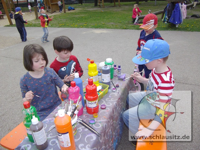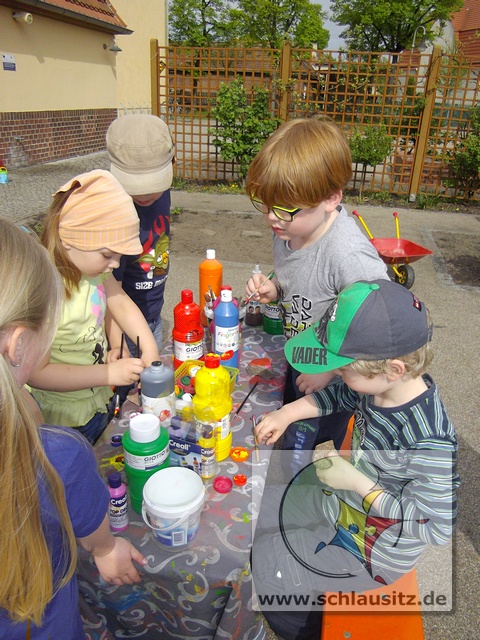 Wir legten ein Kräuter-, ein Gemüse- und ein Blumenbeet an. Jeder hat sein Wissen über die Pflanzen beigetragen und alle packten fleißig mit an. Zum Schluss hat jeder noch einen Stein bemalt. Mit diesen bunten Kunstwerken haben wir unsere Beete schon etwas verziert, denn es wird noch einige Zeit dauern, bis unsere Pflanzen sich farbig zeigen werden. Jetzt müssen wir unseren Garten regelmäßig gießen und vom Unkraut befreien.