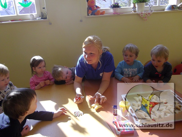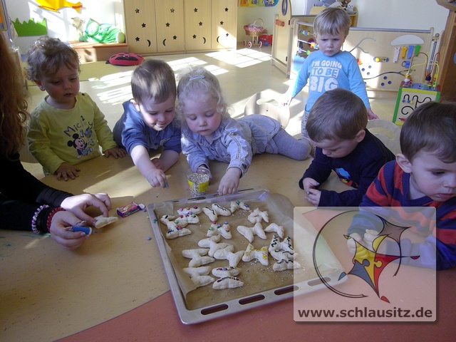 ...passend zu unserem derzeitigen Projekt „Was fliegt denn da im Frühling“ haben die Glühwürmchen kleine und süße Schmetterlinge gebacken und anschließend verziert. Ganz vorsichtig wurde der Blätterteig ausgerollt und jedes Kind konnte mit dem Ausstechförmchen seinen eigenen Schmetterling herauslösen.