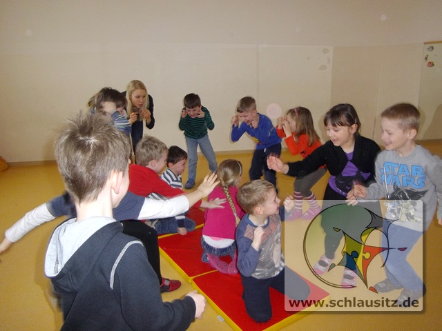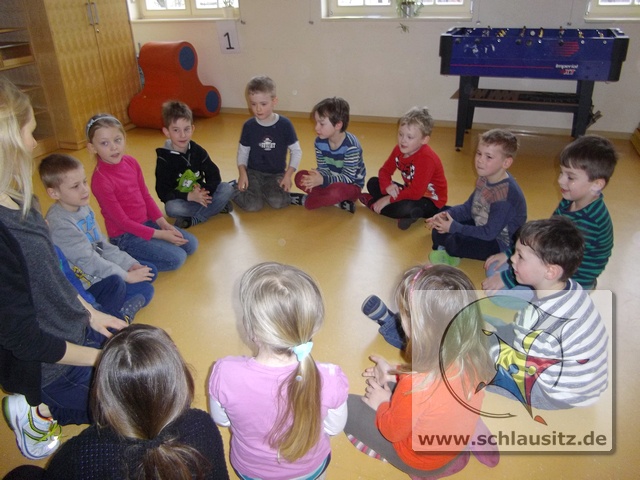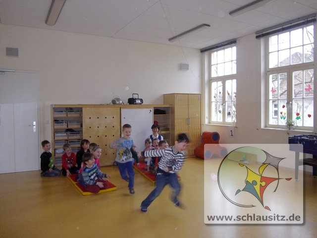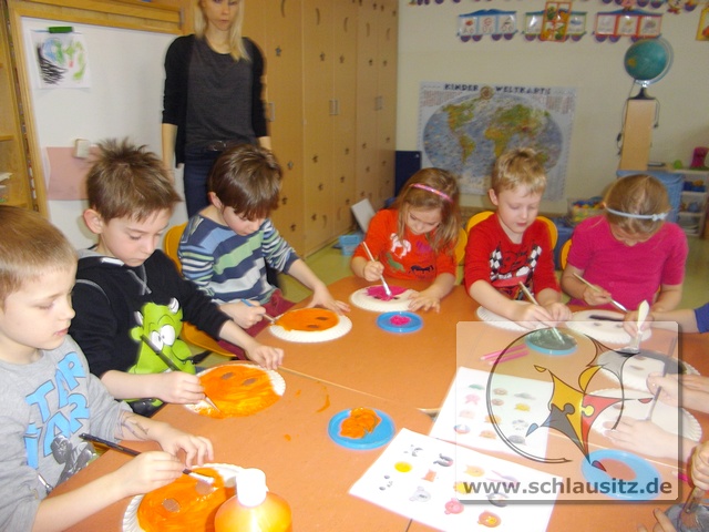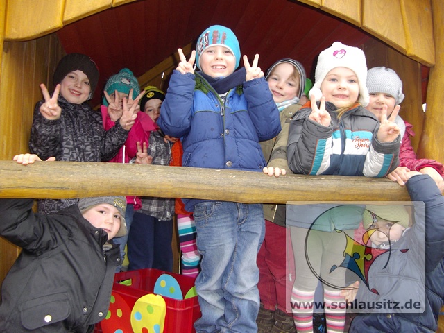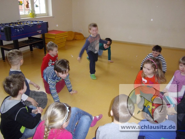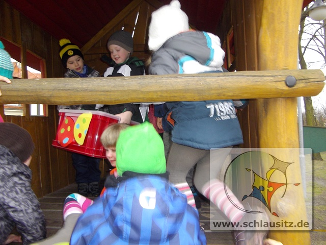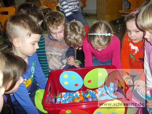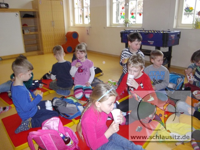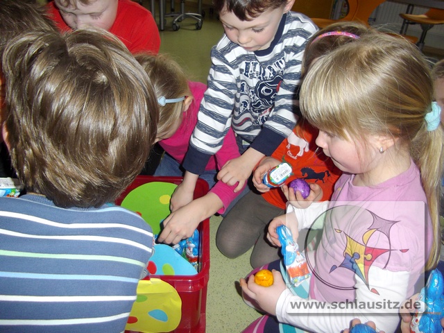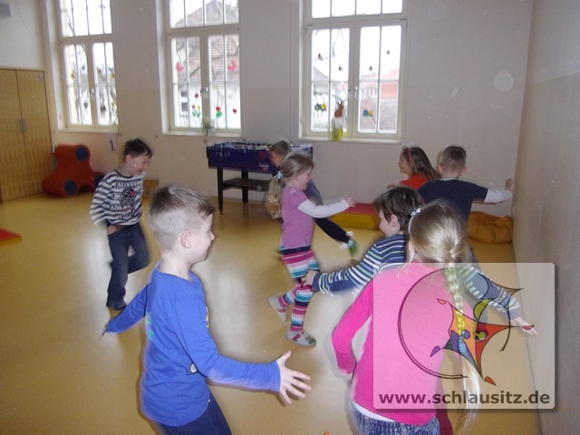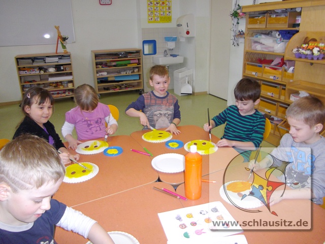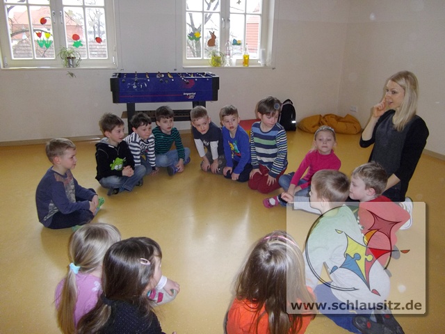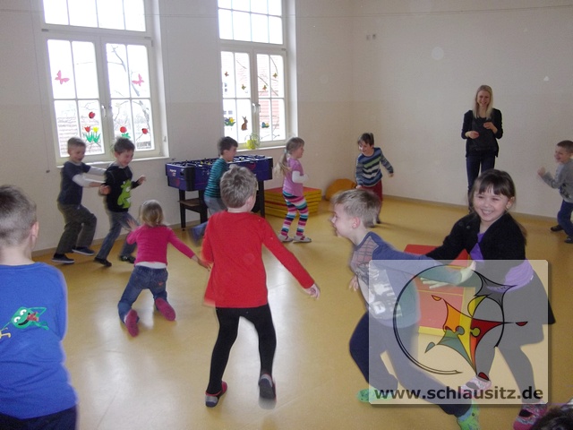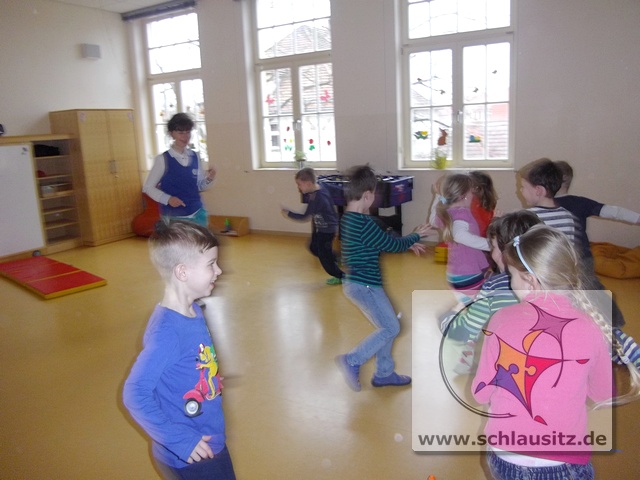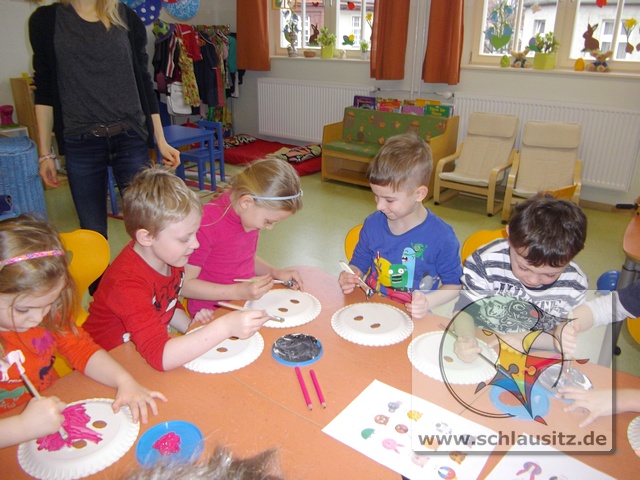Zuerst gestaltete jeder Entdeckerzwerg aus Papptellern eine bunte Tiermaske. Dann lernten wir zwei neue lustige Spiele kennen. Wir rannten, als es hieß, „Die Tiger sind los“ und wir flitzten mit „Familie Meier in den Tierpark“. So richtig geschafft freuten wir uns auf unser kleines Picknick. Als es endlich aufgehört hatte zu regnen, haben wir im Garten sogar noch ein großes Osterpaket entdeckt.