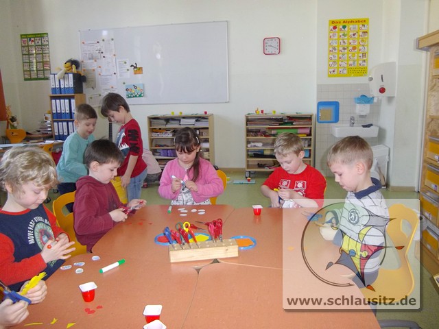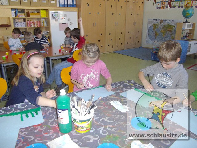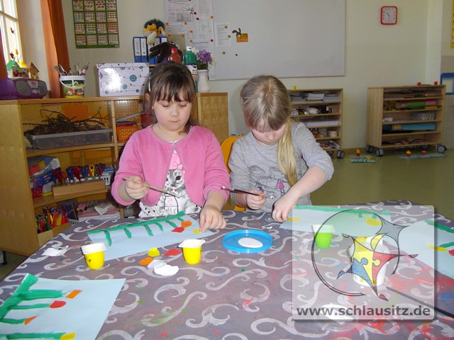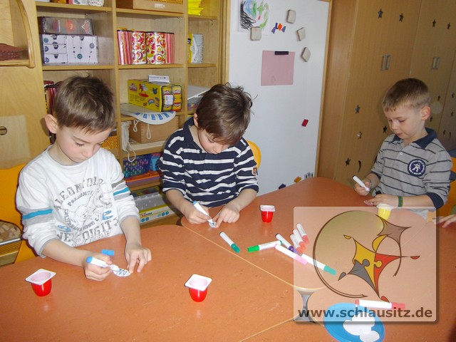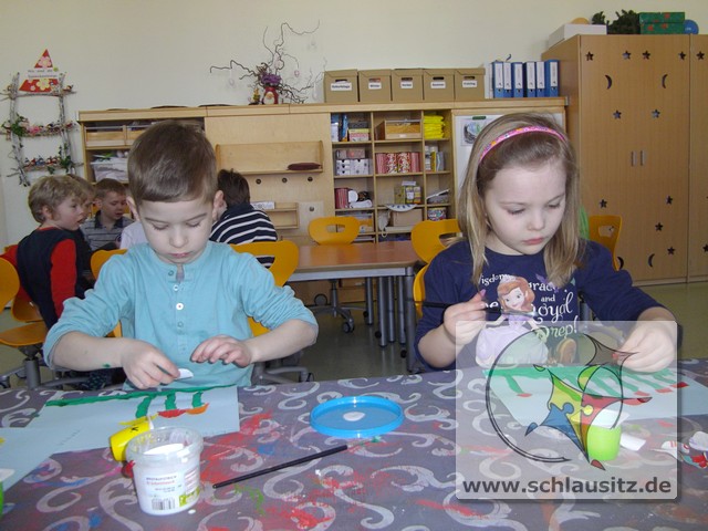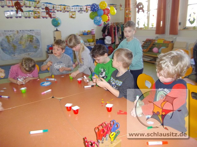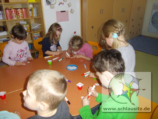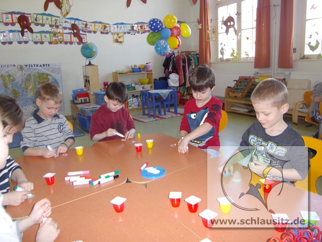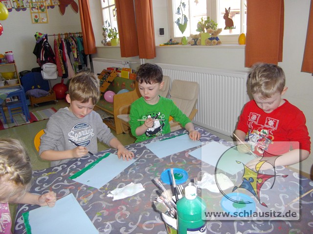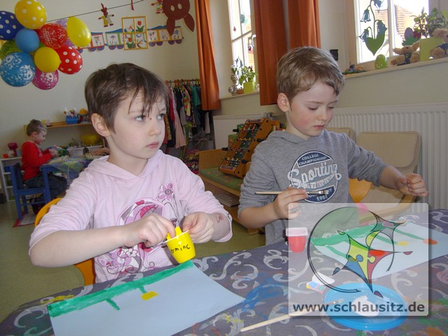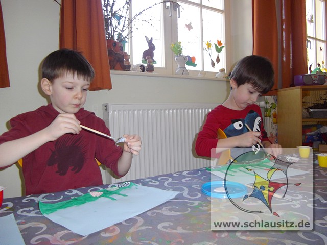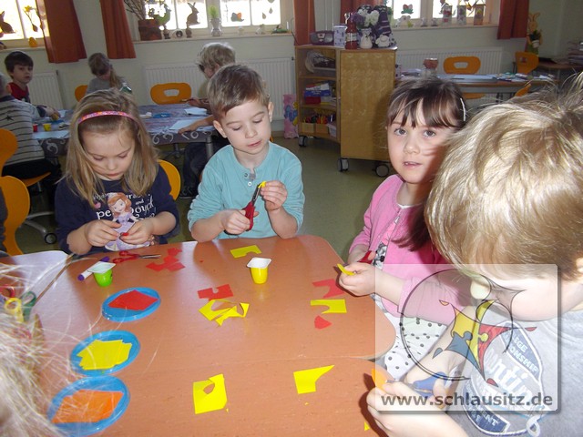 Alle Kinder bestimmten Farbe, Anzahl und Form der Blumen und auch die Anzahl und Muster der Ostereier selbst.
