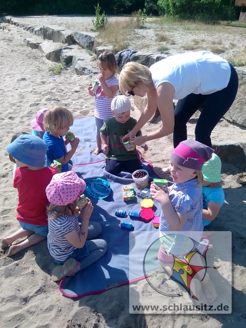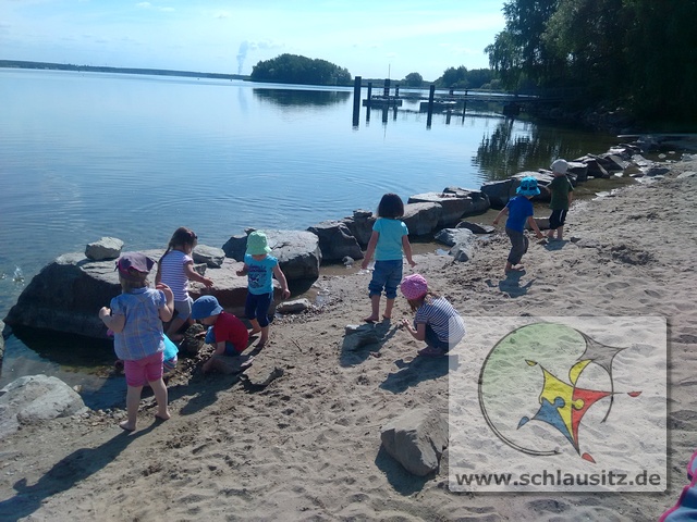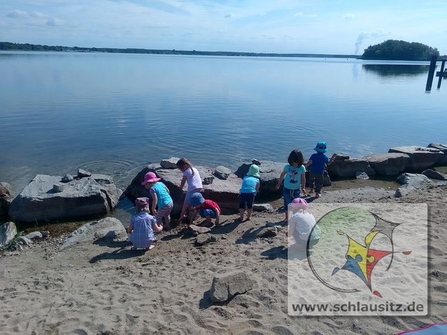 Ein Ausflug zum Senftenberger SeeEinen langen Spaziergang hatten alle Abenteuerwichtel hinter sich, als sie endlich am See ankamen. Alle Kinder waren sehr aufgeregt und konnten es kaum erwarten endlich ans Wasser zu gehen. Doch was für eine Überraschung… Frau Zschech, Stine`s Mama war auch am See.