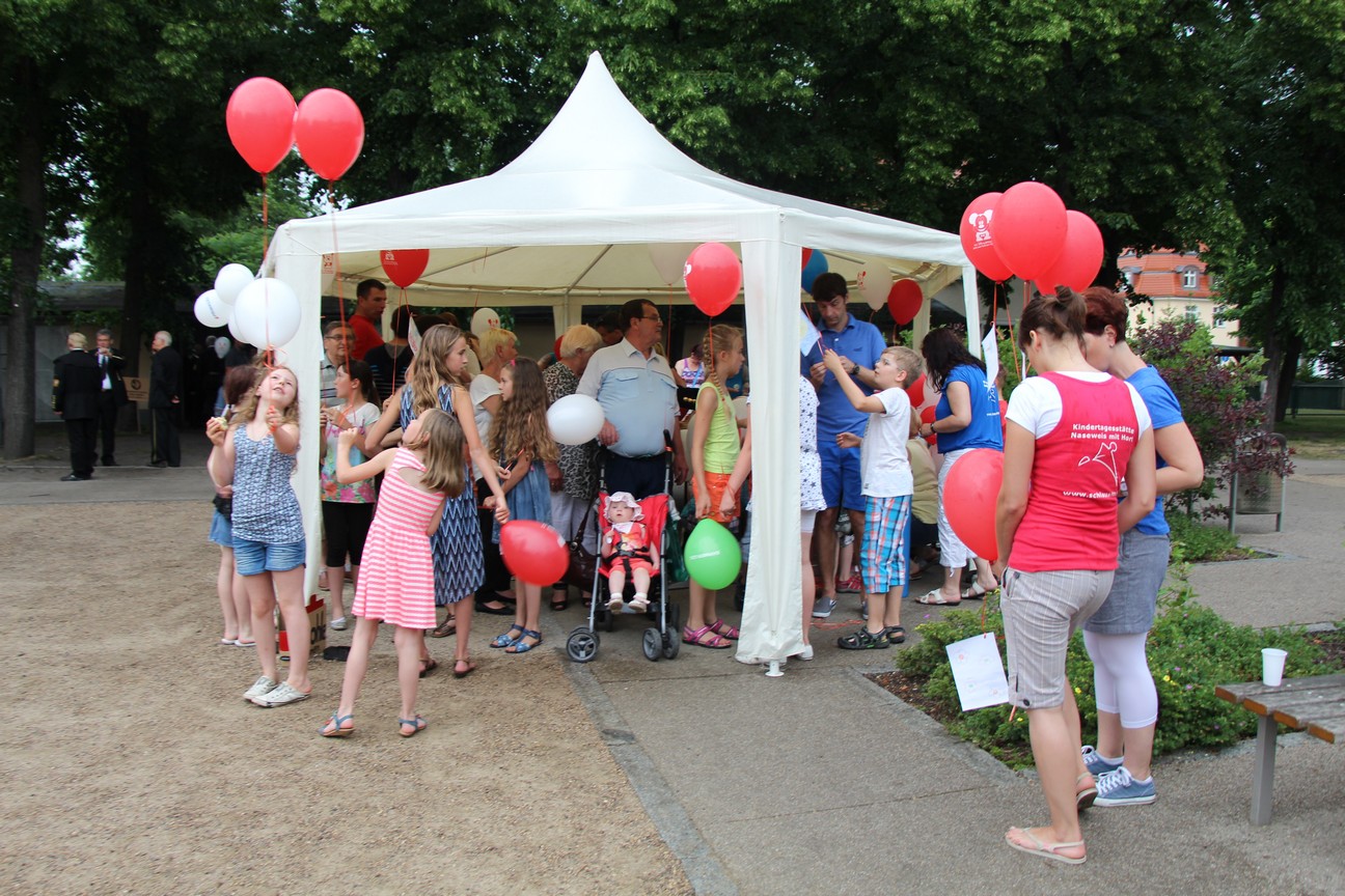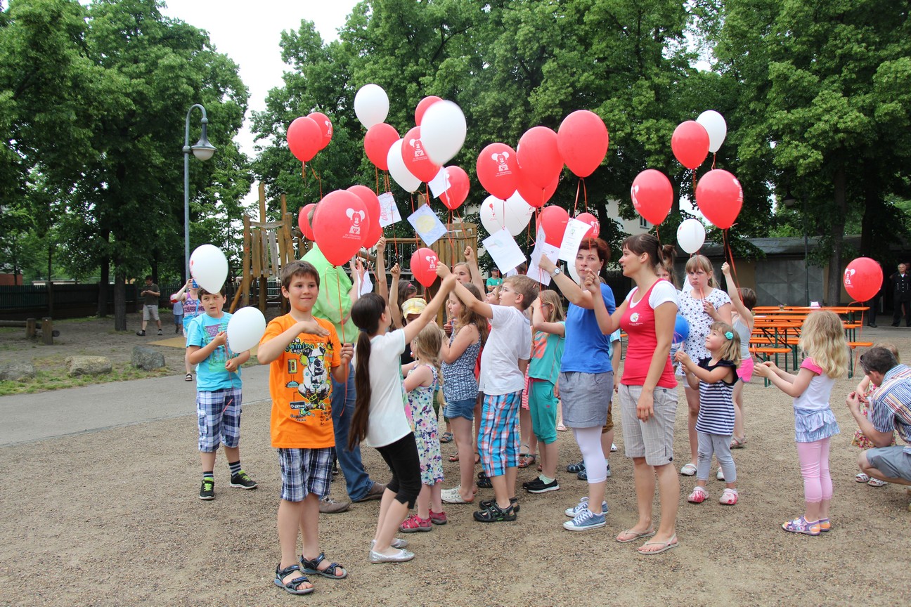 Zum Abschluss des Festes ließen die Kinder dann die Ballons in den Himmel steigen, an die sie ihre selbstgestaltete Grußkarten angehängt hatten.