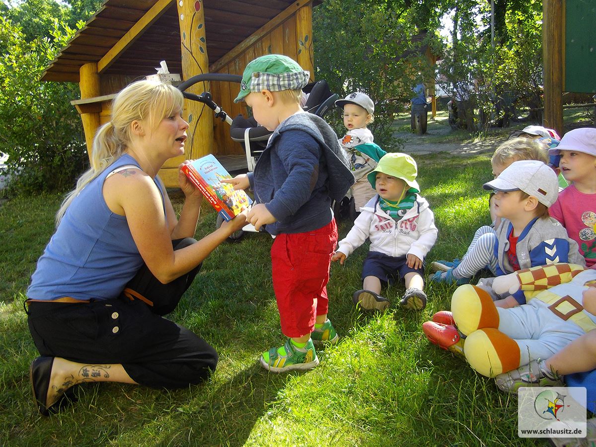 Ganz gespannt hörten alle Glühwürmchen zu was, Frau Ballat über die Baustelle erzählte und schauten die Bilder im Baustellenbuch von Oskar aufmerksam an. Das Anna uns Bob den Baumeister mit zu unserer Baustelle gebracht hat war eine große Freude.