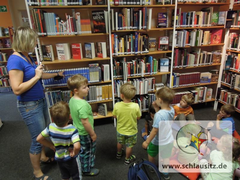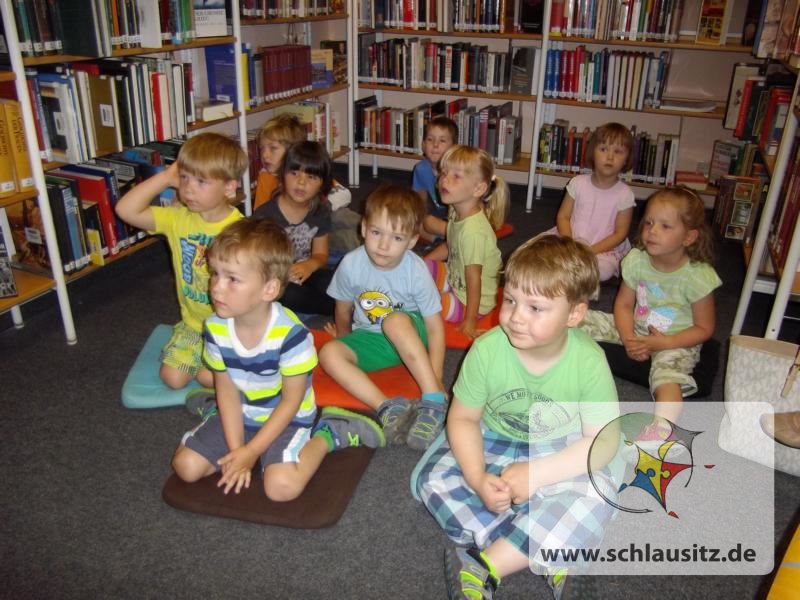 Unser Ausflug in die Senftenberger BibliothekNun endlich war es soweit. Alle Grashüpfer waren sehr aufgeregt, denn eine  Bibliothek kannten viele Kinder noch nicht. Alle staunten über die großen Regale mit den verschiedenen Büchern.
