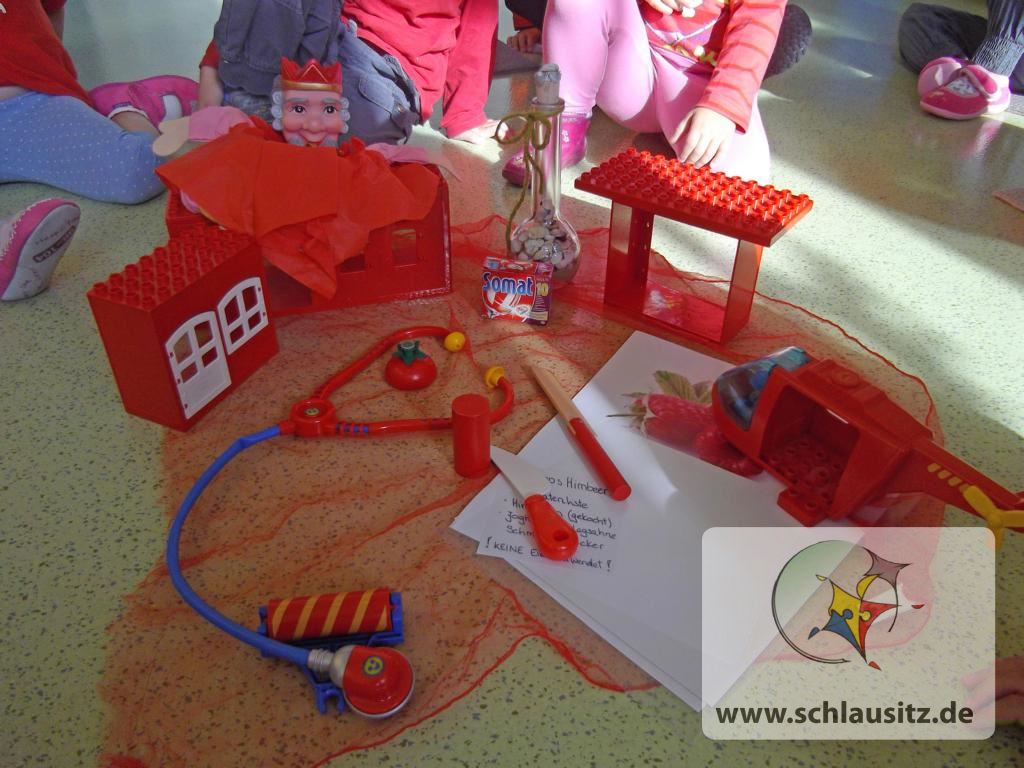 Natürlich war der Farbenkönig auch dabei und er war ganz begeistert, wie viele rote Gegenstände wir doch in unserem Gruppenraum fanden.