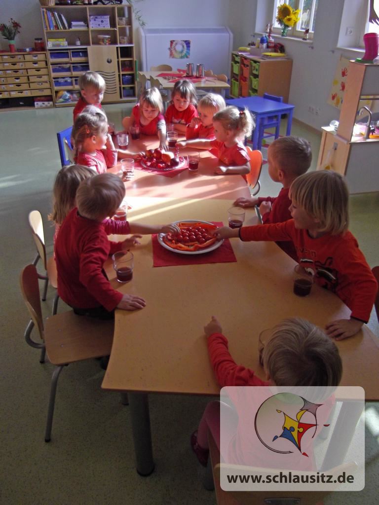 Den „Farbtag“ der Farbe Rot haben wir bereits gefeiert und alle Kinder kamen rot gekleidet in den Kindergarten.