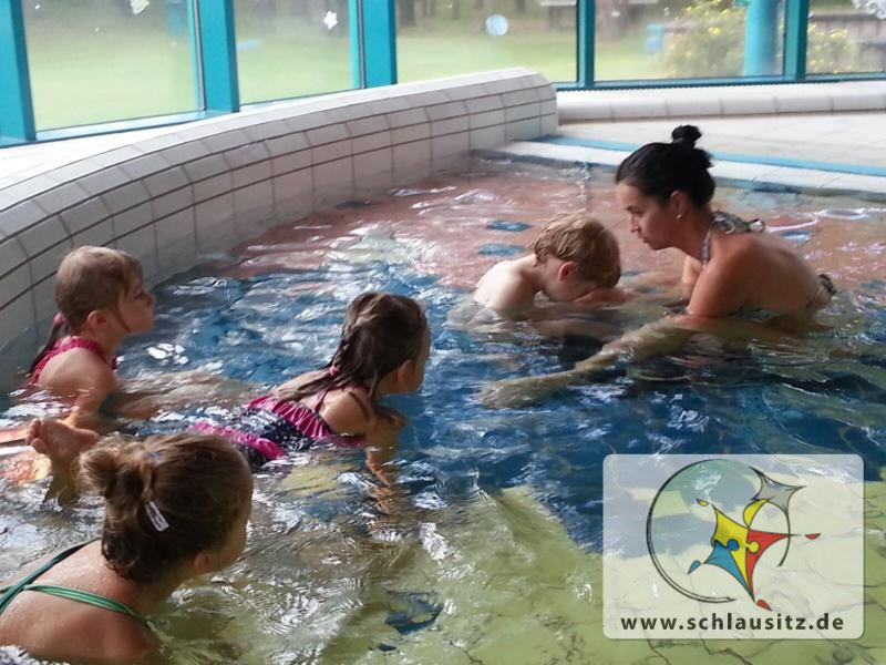 Hier werden wir jeden Dienstag in die Schwimmhalle von Senftenberg gefahren, um dort im Laufe des letzten Kindergartenjahres das Schwimmen zu erlernen und hoffentlich auch das Schwimmabzeichen „Seepferdchen“ zu absolvieren.