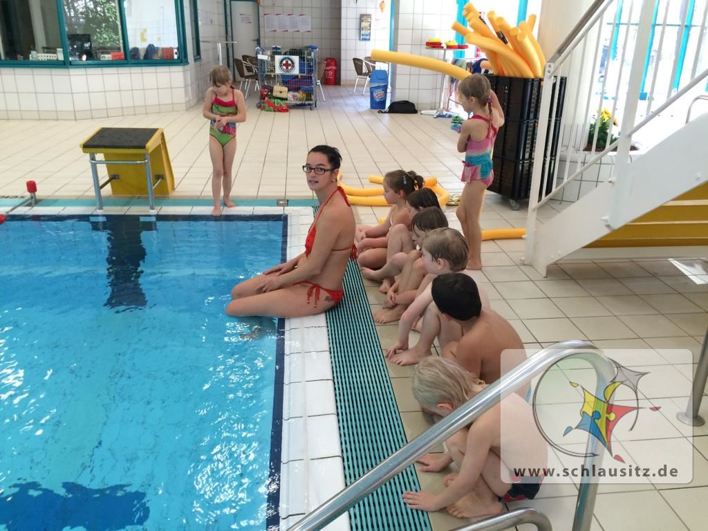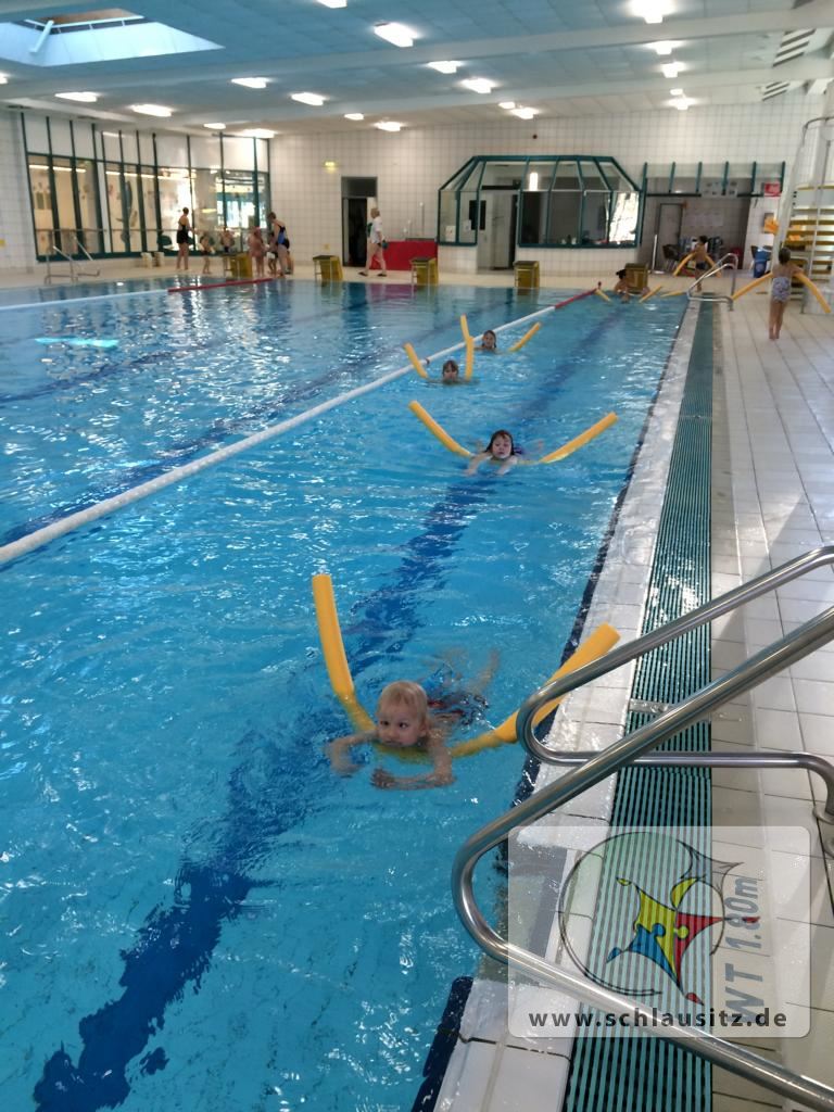 So übten wir am Beckenrand die Schwimmbewegungen für das Brustschwimmen. Arme und Beine kraftvoll zu bewegen, dass man sich im Wasser fortbewegen kann, ist gar nicht so einfach!