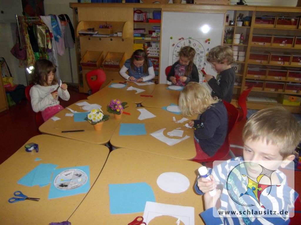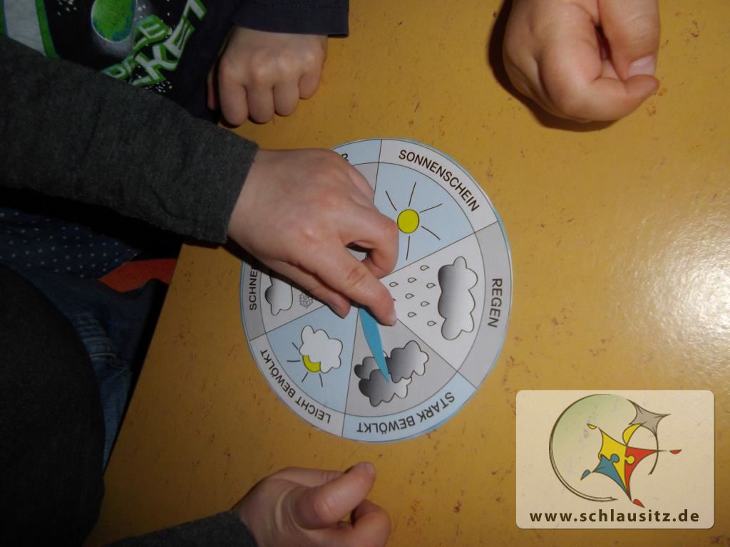 Um die Wettererscheinungen zu dokumentieren beobachteten unsere Schlaumäuse drei Mal täglich die Erscheinungen des Wetters und dokumentierten es symbolisch in unserem Wetterkalender.