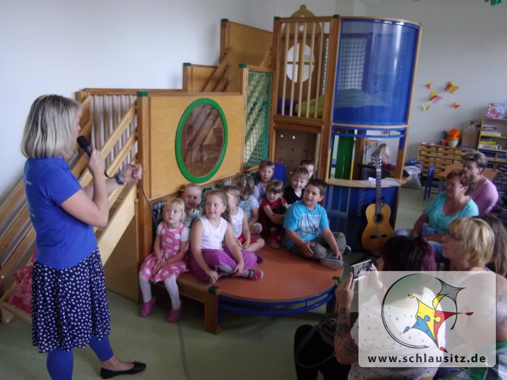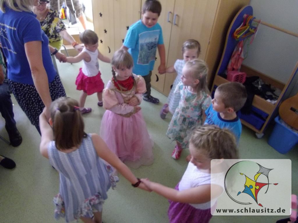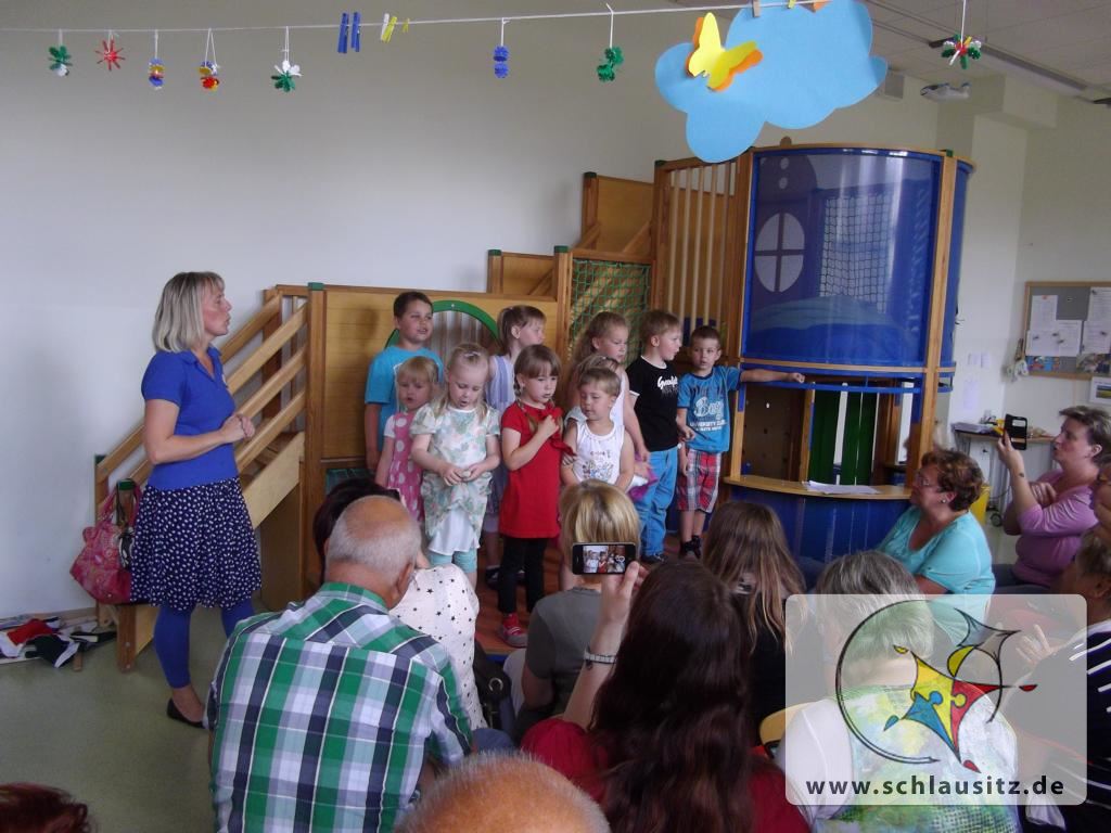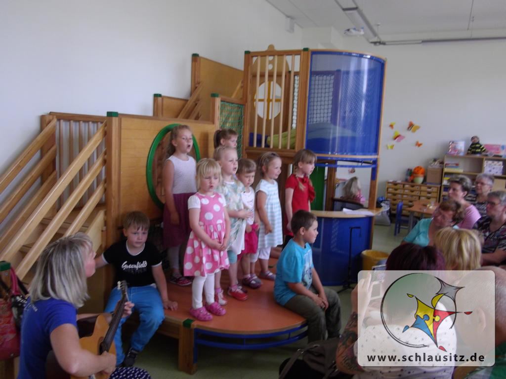 1Am 7. Juli fand mit allen Kindern der Interessengruppe “Musik liegt in der Luft“ ein Abschlusskonzert statt. Natürlich waren auch alle Eltern und Großeltern dazu eingeladen. Die kleinen und großen „Musikanten“ konnten an diesem Tag zeigen, was sie im letzten Halbjahr alles gemeinsam mit Frau Häring gelernt hatten.   Viele neue und alte Kinderlieder waren zu hören. Aber auch Kreisspiele  konnten bewundert werden. Das Publikum war begeistert. Das konnte man am tobenden Beifall erkennen. Und die Sänger waren sehr, sehr stolz.