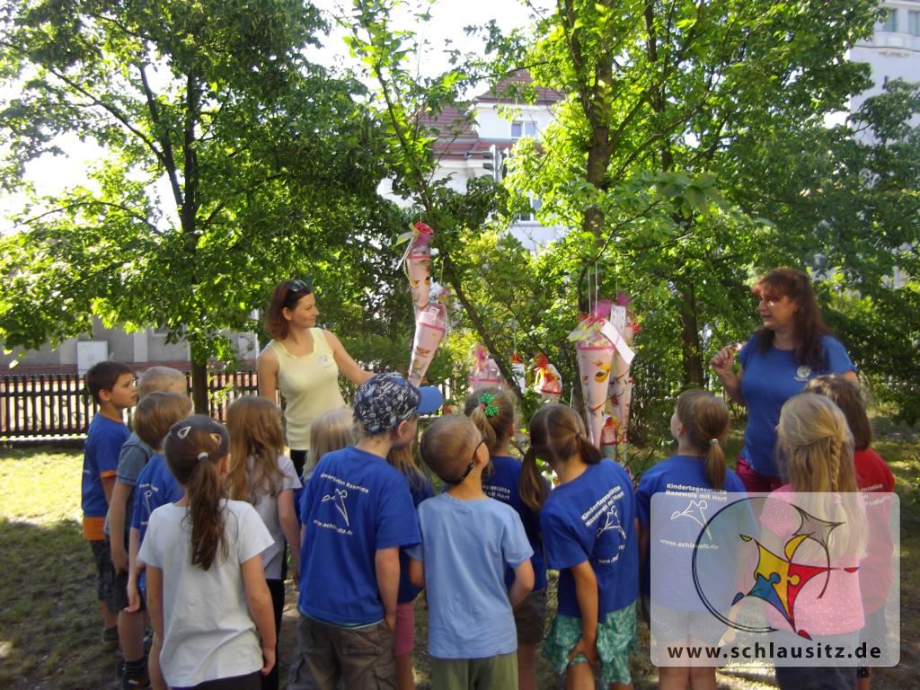 Gemeinsam sprachen wir ihn und gossen den Baum noch mit etwas Zauberwasser. Nun hieß es warten. In der Zwischenzeit malten wir ein tolles Unterwasserbild. Dann gingen wir noch einmal zu unserem Zauberbaum und alle Zuckertüten waren wirklich gewachsen. Jedes zukünftige Schulkind erhielt nun seine Zuckertüte und freut sich schon riesig auf den Schulanfang.