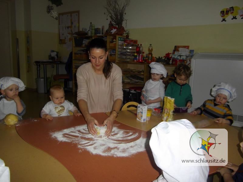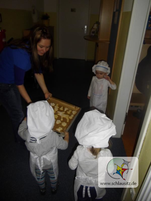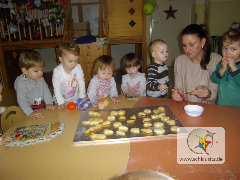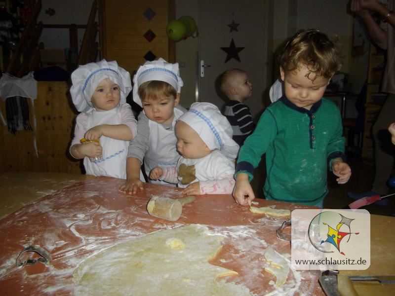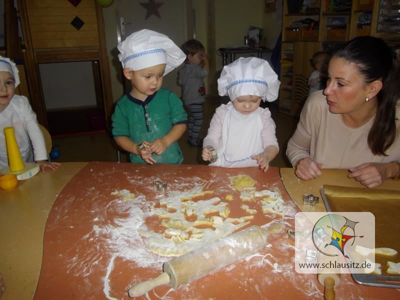 IMGP2299Heute besuchte uns Mats mit seiner Mama und gemeinsam backten wir köstliche Weihnachtsplätzchen. Frau Redies hatte den Teig schon vorbereitet und so konnten wir gleich beginnen.