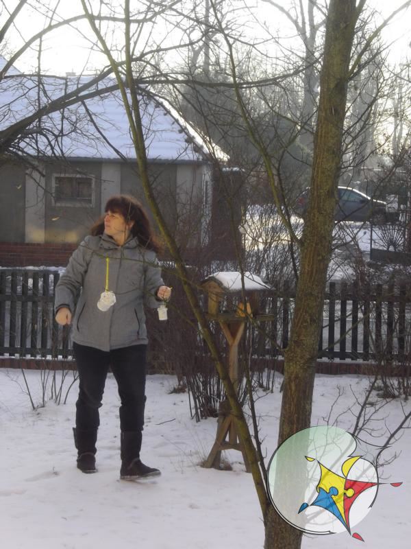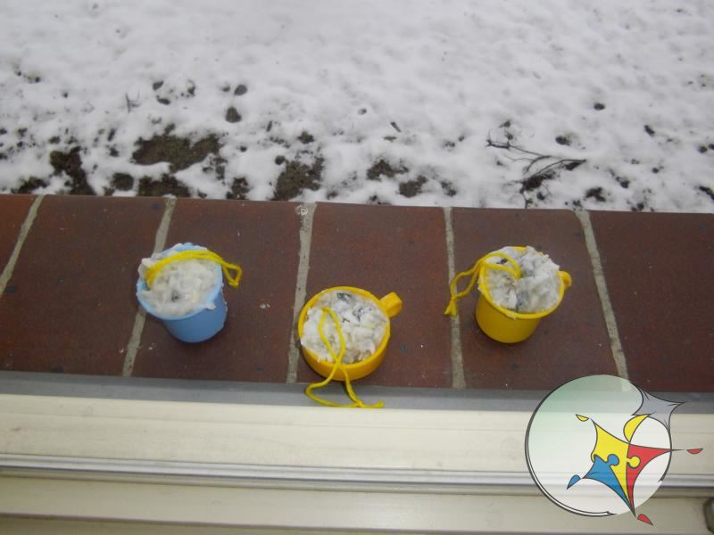 K800 IMGP2692Im Winter ruht die Natur und der Schnee bedeckt die Erde. Jetzt ist es auch für die Tiere schwierig genügend Nahrung zu finden, deshalb beschlossen wir Glühwürmchen  zu helfen. Aus Kokosfett und verschiedenen  Körnern stellten wir Futter für die Vögel her. Später brachten wir es an verschiedenen Bäumen in unserem Garten an und beobachten nun täglich, wie die Vögel daran naschen.