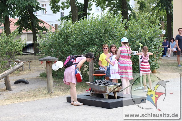Auf dem großzügigen Gelände lockten viele Attraktionen große und kleine Gäste. Im Sandkasten wurde mit viel Ausdauer gegraben, um die goldenen Kohle zu finden. Viel Geschick brauchte man dagegen beim Parcours mit der Schubkarre. Großes Interesse herrschte am Schmink- und Bastelstand, an dem die Kinder kleine Rußmännchen basteln konnten. Besonders kniffelig war in diesem Jahr die Schätzfrage. In einer Schubkarre befanden sich Kohlebriketts, deren Anzahl die Gäste schätzen mussten.