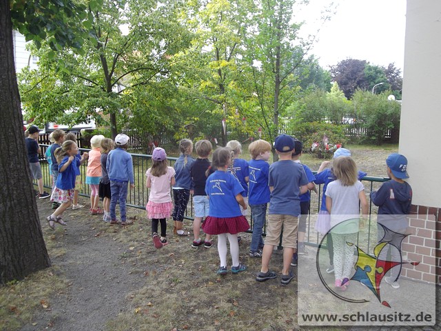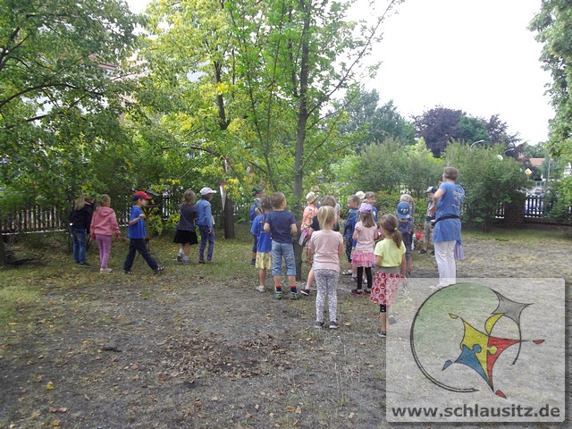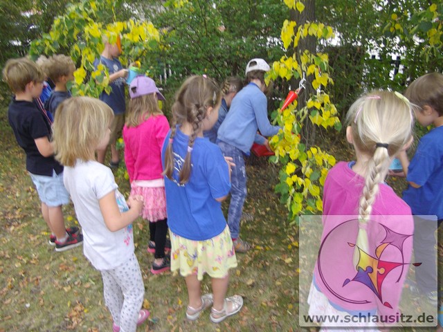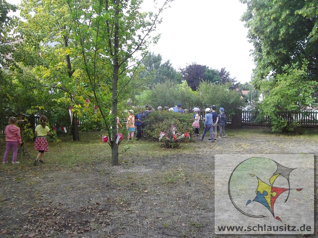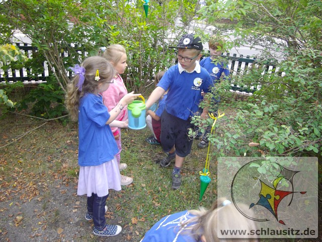Nach unserer Begrüßung suchten wir auf dem Kita- Gelände den Zuckertüten-Garten. In diesem Jahr waren die Früchte sehr klein und reichten gar nicht für uns alle. Aber mit Hilfe von Wasser, einem Zauberspruch und „Feen-Zauberpulver“ versuchten wir unser Glück.