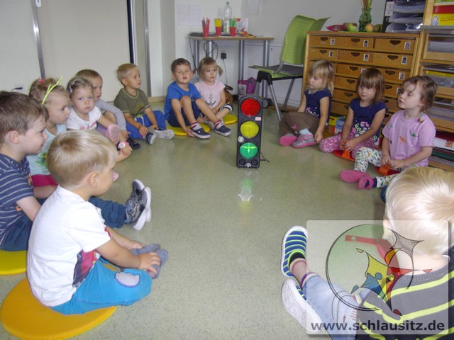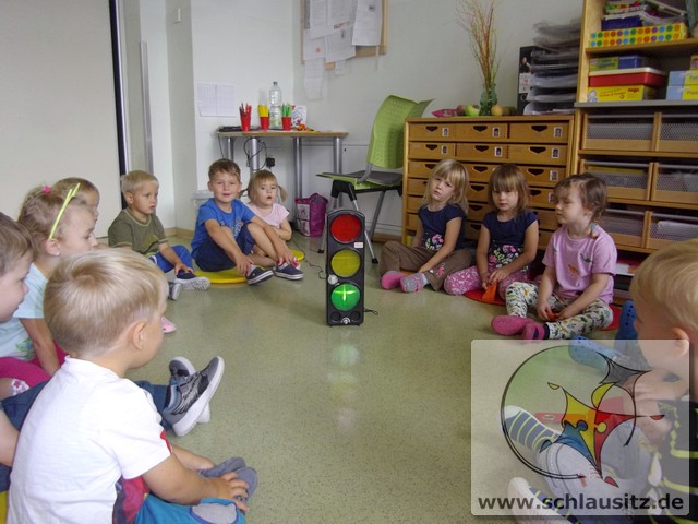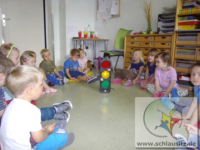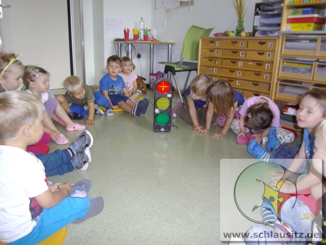 Zeigt die Ampel rot, müssen alle Kinder stehen bleiben.